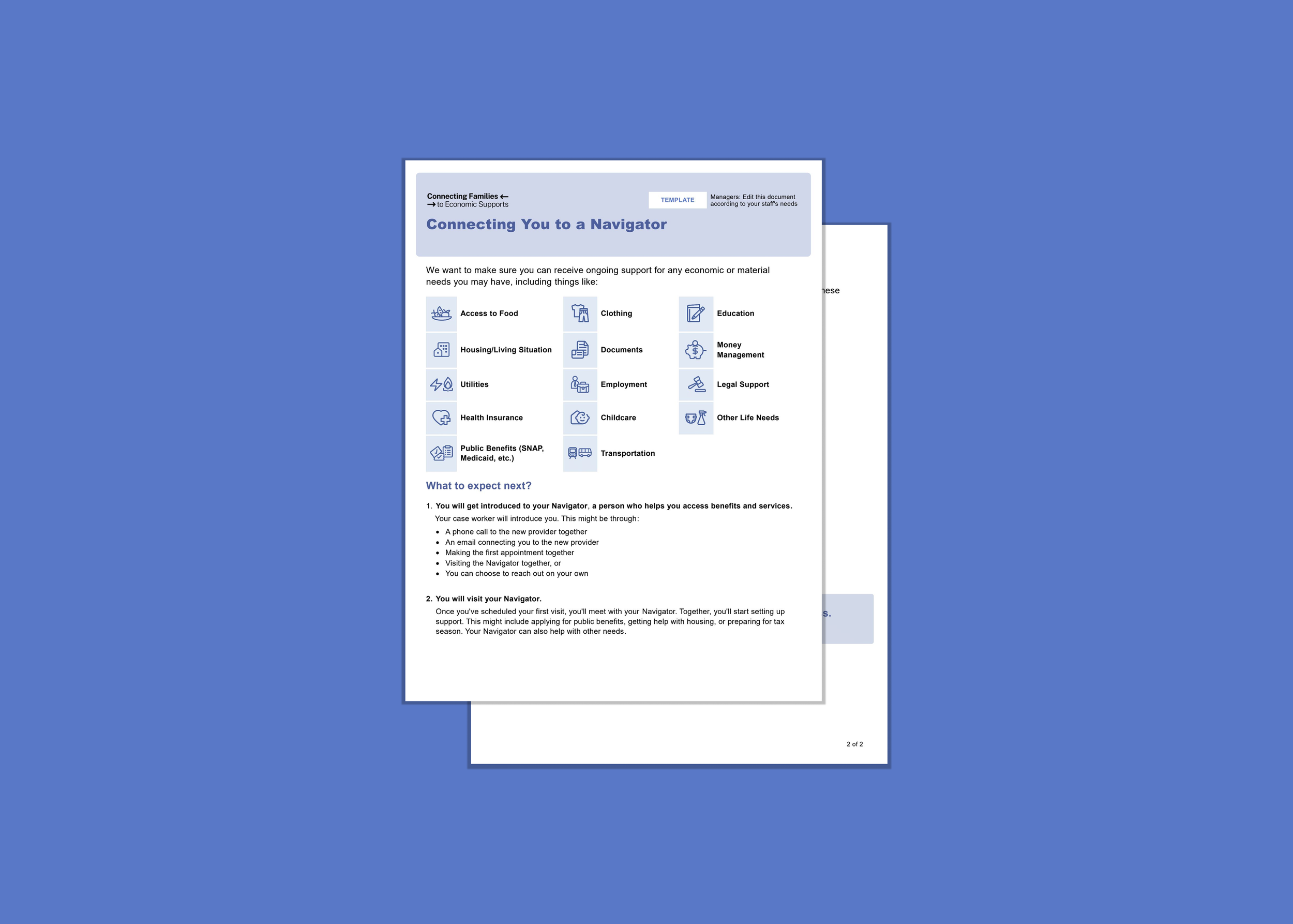 The info sheet sets expectations and clarifies roles when a Case Planner is referring a family or young person to a Navigator. It also lists documents they should bring to their first navigation meeting.